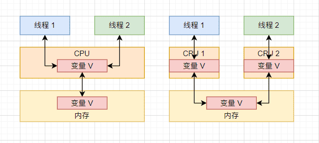 缓存导致了可见性问题,在 Java 中所有变量都储存在主内存中,- 每个线程都有自己独立的工作内存(缓存、寄存器等),里面保存该线程使用到的变量的副本(主内存中该变量的一份拷贝),线程对共享变量所有的操作都必须在自己的工作内存中进行,不能直接从主内存中读写,不同线程之间也无法直接访问其他线程的工作内存中的变量,线程间变量值的传递需要通过主内存来进行。